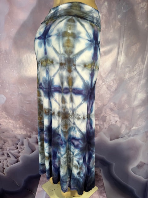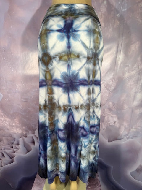 Soft and flowing, feel the wind in the magical cotton - rayon/ cotton blend skirt. Cut and Sewn in California and tiedyed by Misty Morning of San Rafael.