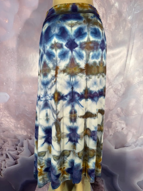 Soft and flowing, feel the wind in the magical cotton - rayon/ cotton blend skirt. Cut and Sewn in California and tiedyed by Misty Morning of San Rafael.