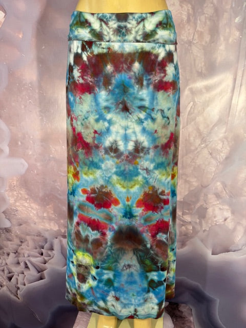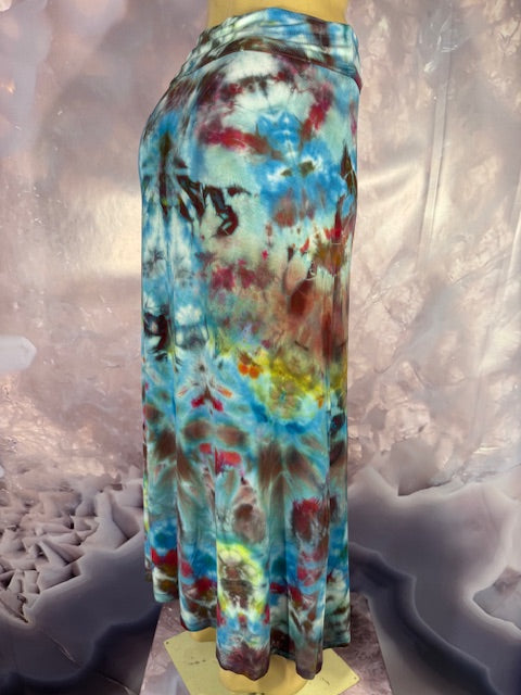 Soft and flowing, feel the wind in the magical cotton - rayon/ cotton blend skirt. Cut and Sewn in California and tiedyed by Misty Morning of San Rafael.