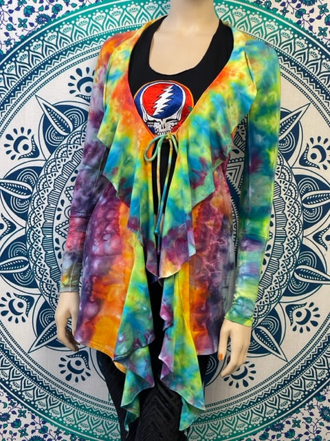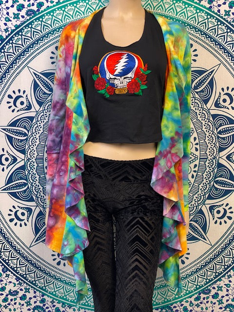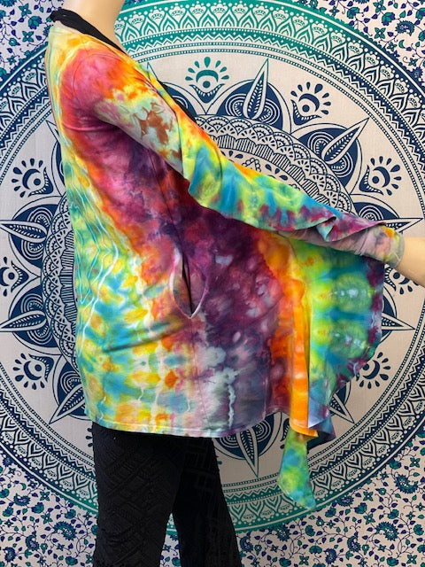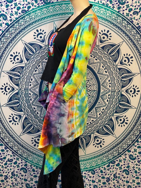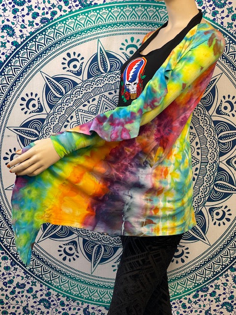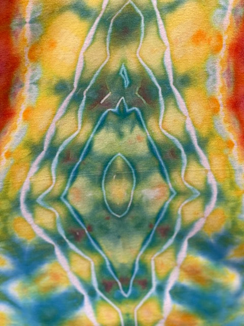 The White is made in San Francisco by Warrior Within Designs out of Organic Bamboo....OMG So soft!!! Then we mail them to Chuck Brine aka Corndog Dyes where he ties them and then ICE dyes them for this ultimate softness!