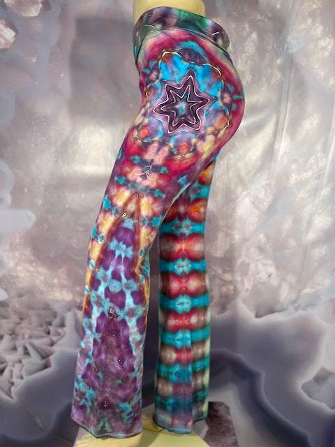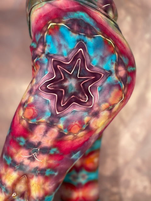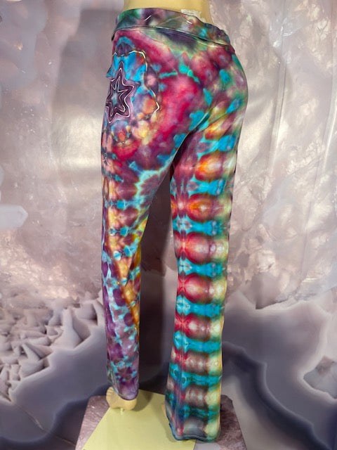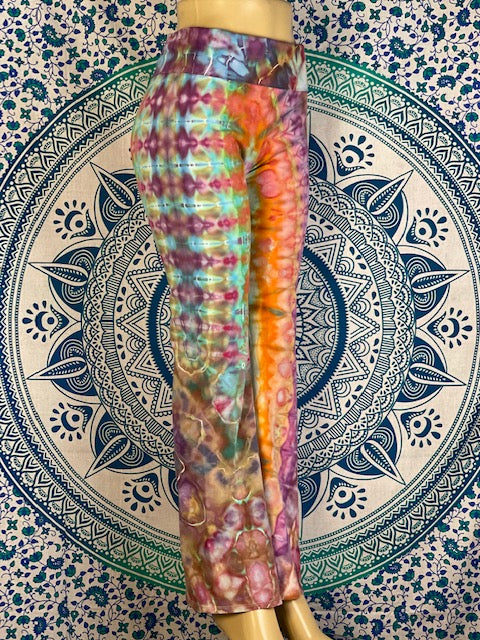 Royal Apparel branded USA made yoga pants with fold over waist.  Tiedyed by Chuck Brines aka Corn Dog Dyes...these are so good that you don't even need condiments!