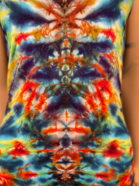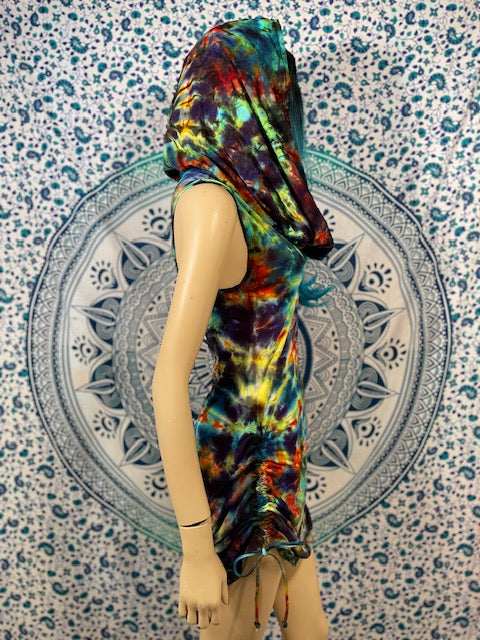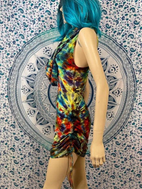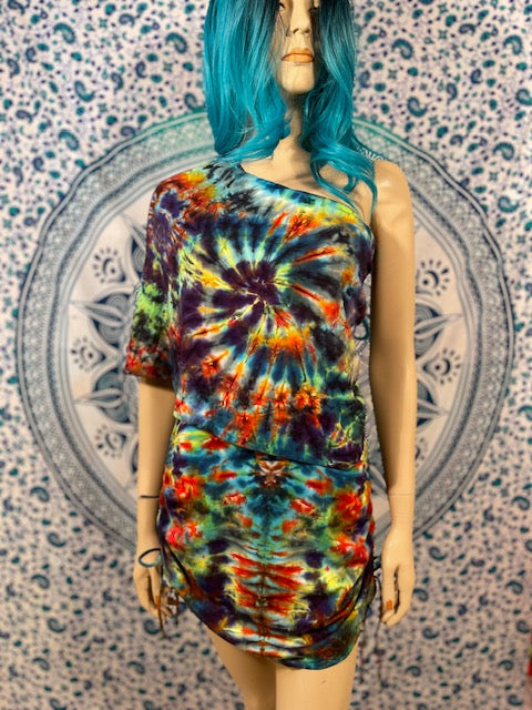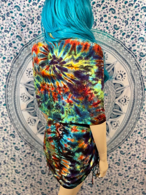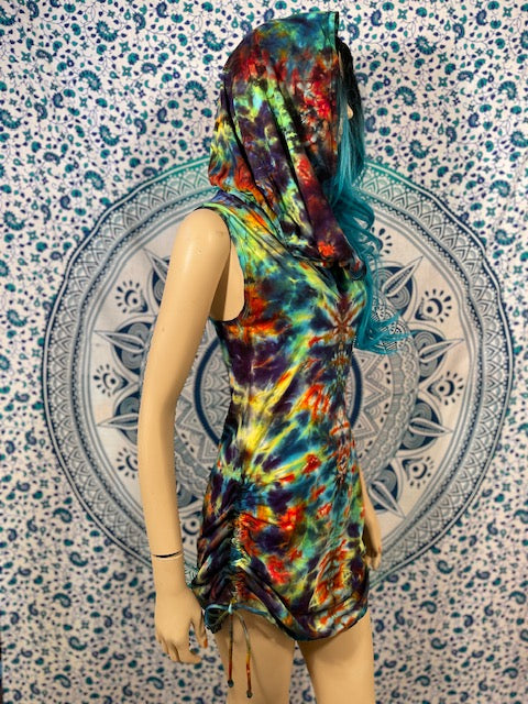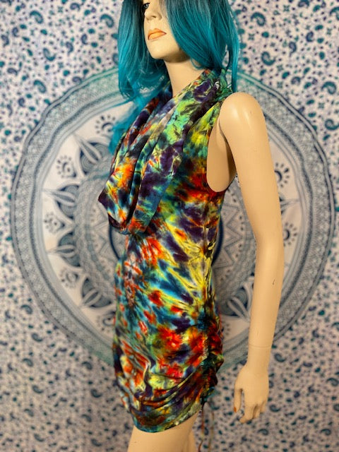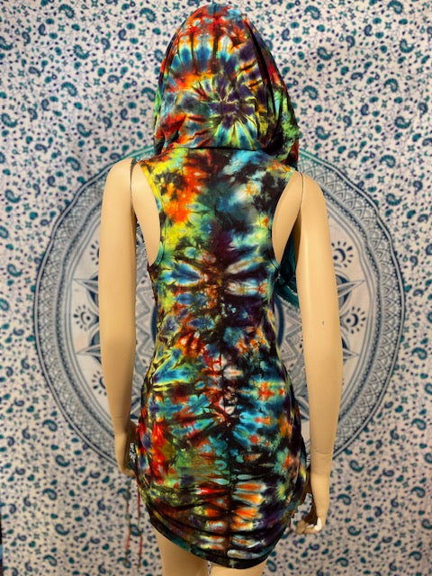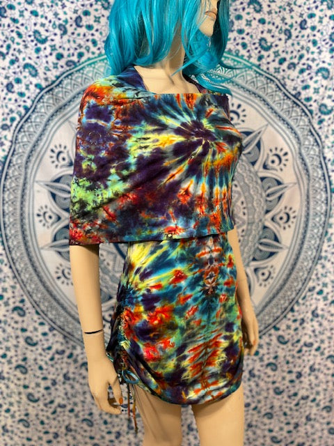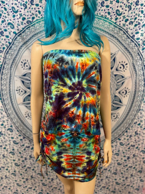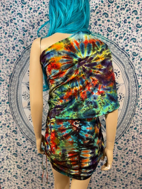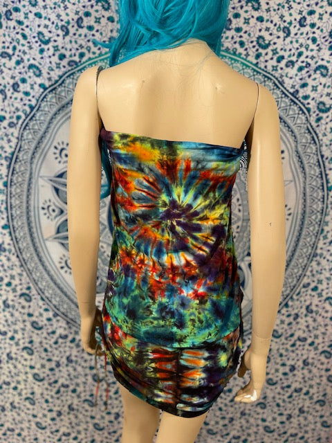 Okay this is an EPIC dress!! First off, it is made by Warrior Within Designs here in San Francisco out of ORGANIC BAMBOO COTTON, then we mail the Blank up to Eugene to Josh Wojcik of Barefoot Lazer Tie Dye for him to do his magic color epicness on!