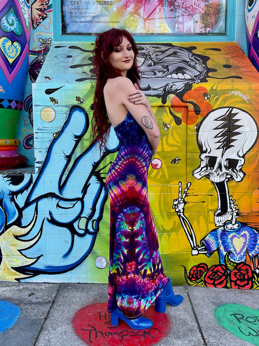 Introducing the soft Rayon Cotton Princess Dress, tiedyed by one of our fav tiedye artists, Barefoot Lazer aka Josh Wojick from Eugene Oregon.