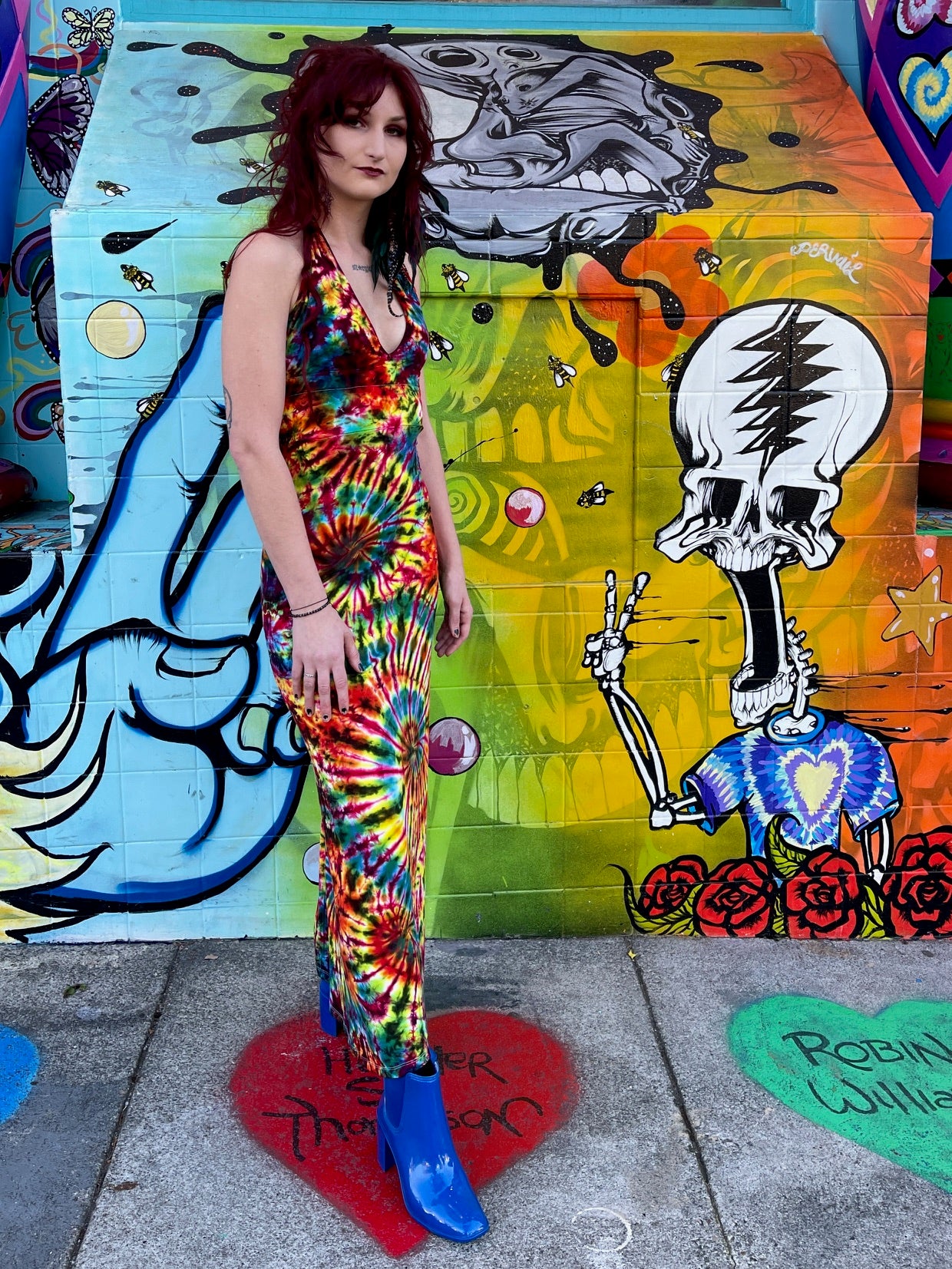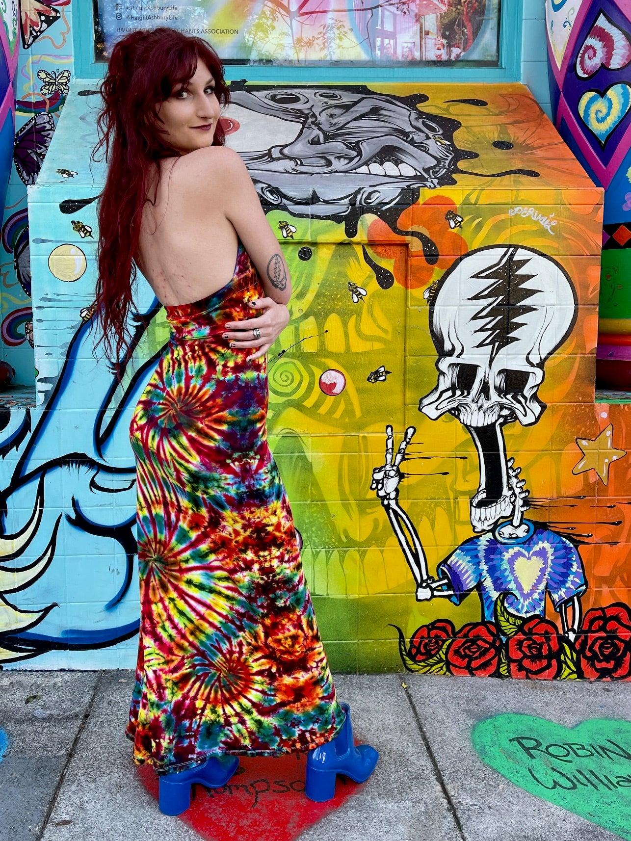 Designed by Love on Haight owner, Sunshine Powers this AWESOMENESS DESIGNS dress is built for all bodies.  Sunshine sometimes likes to wear a "bralette" under it when she needs more coverage :)