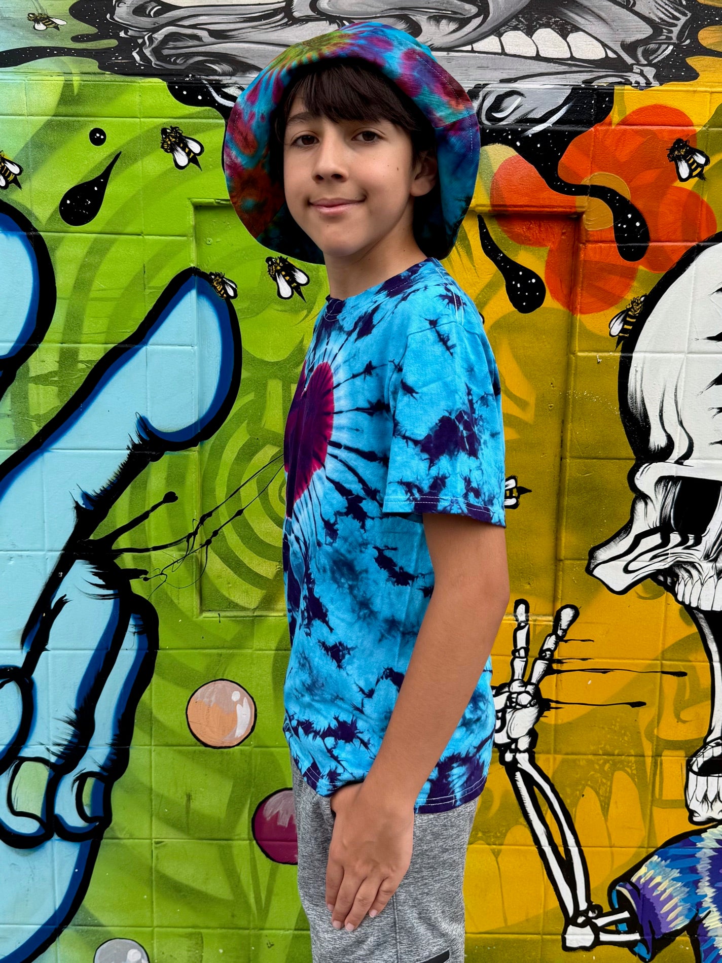 These magical shirts were tie dyed by Gary McMillan of Cosmic Cotton, located in Vermont. Gary has been tiedying since 1983 and you can tell!! We love this Classic Tiedye!