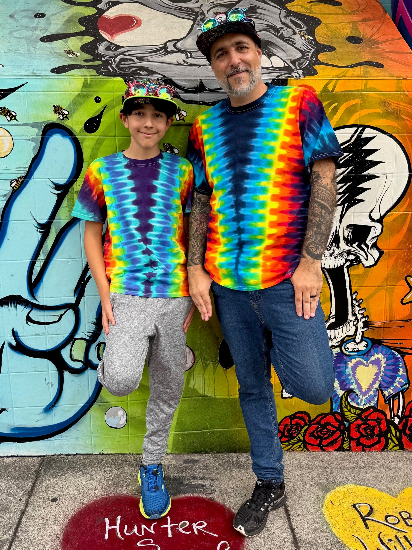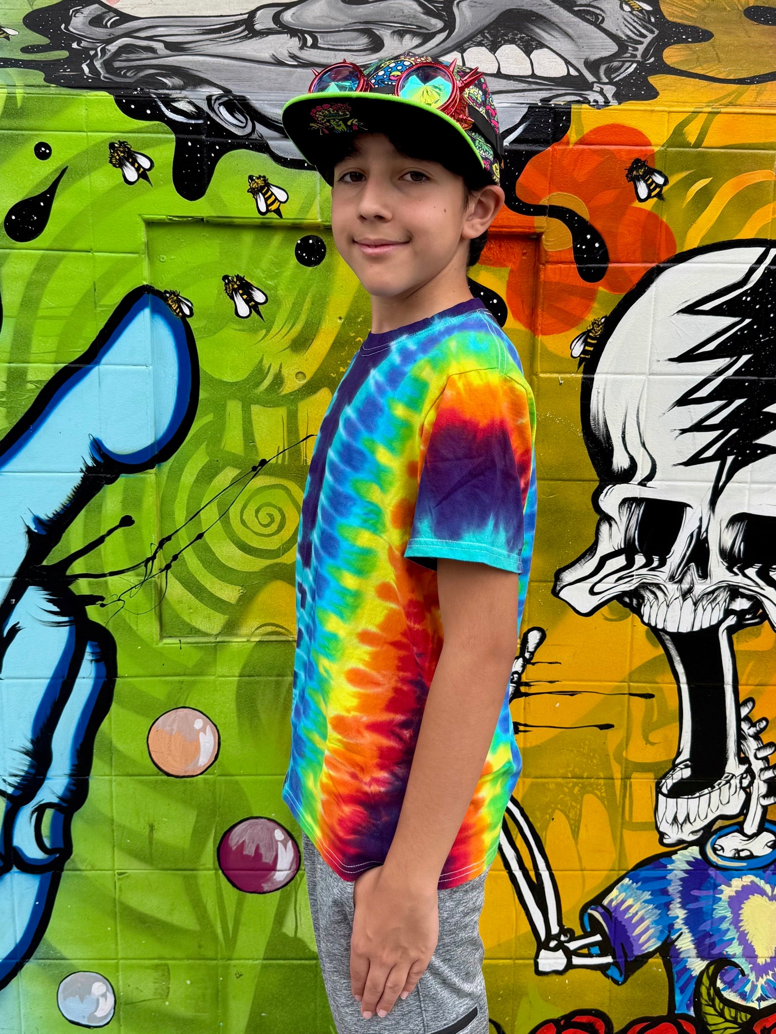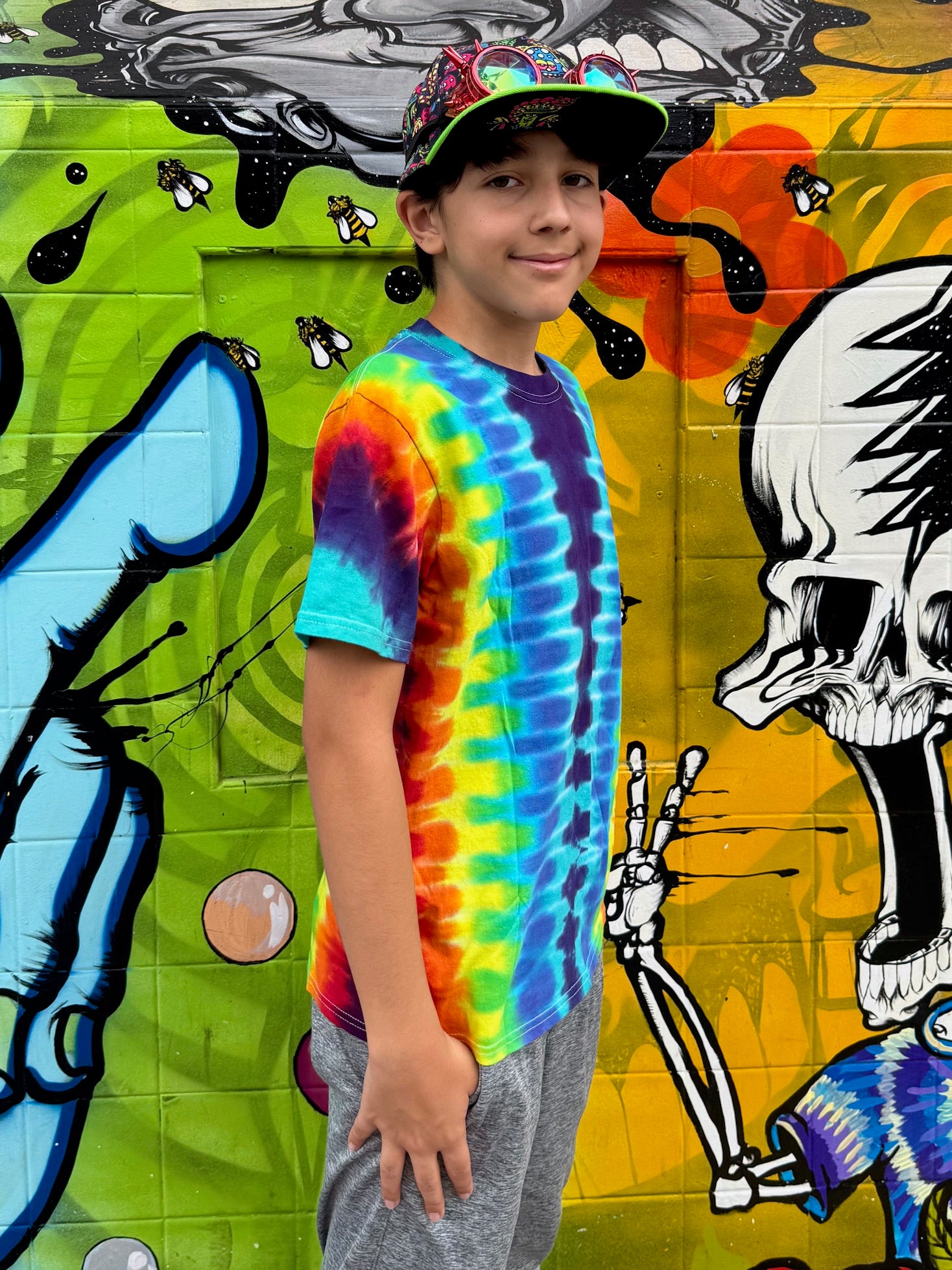 These magical shirts were tie dyed by Gary McMillan of Cosmic Cotton, located in Vermont. Gary has been tie dying since 1983 and you can tell!! We love this Classic Tiedye!