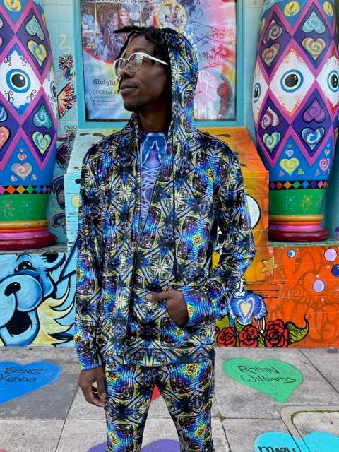 The zip up hoodie is unisex and comes with matching jogger pants to complete the full look! Check it out.