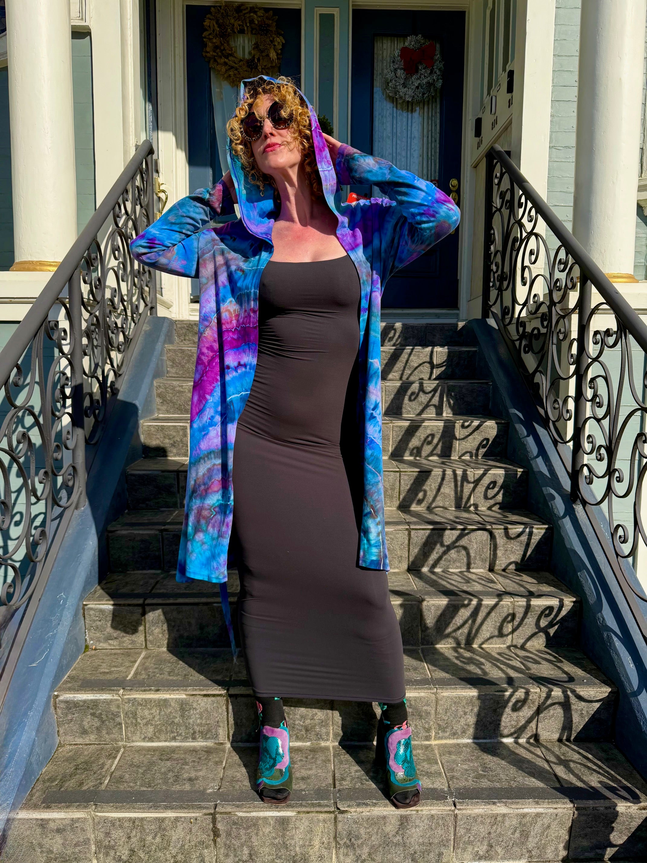 Cut & Sewn in California out a Organic Bamboo Cotton Blend with a hint of spandex these fitted Cloaks are OUT OF THIS WORLD.