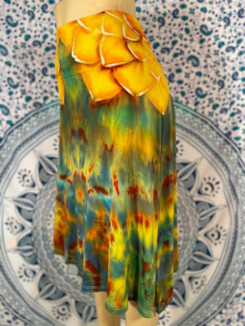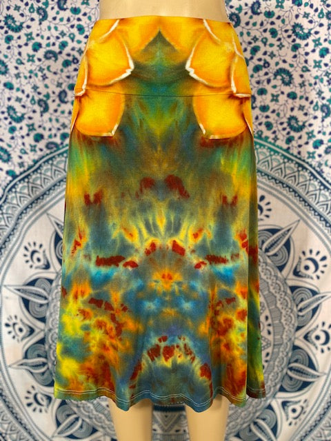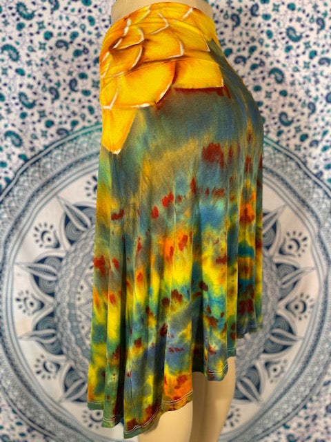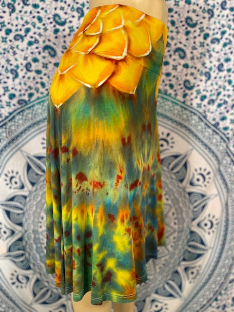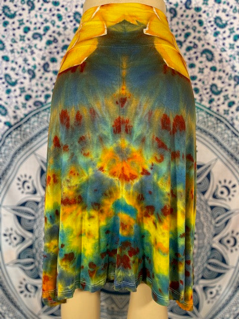 Soft and flowing, feel the wind in the magical cotton - rayon blend skirt. Cut and Sewn in California and tiedyed by the mother/daughter Duo of KKtiedyeCo. of Lodi. California...these skirts are perfect.