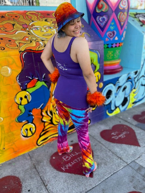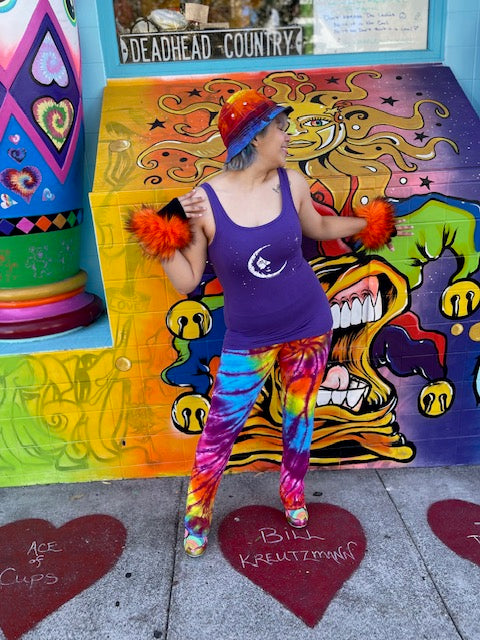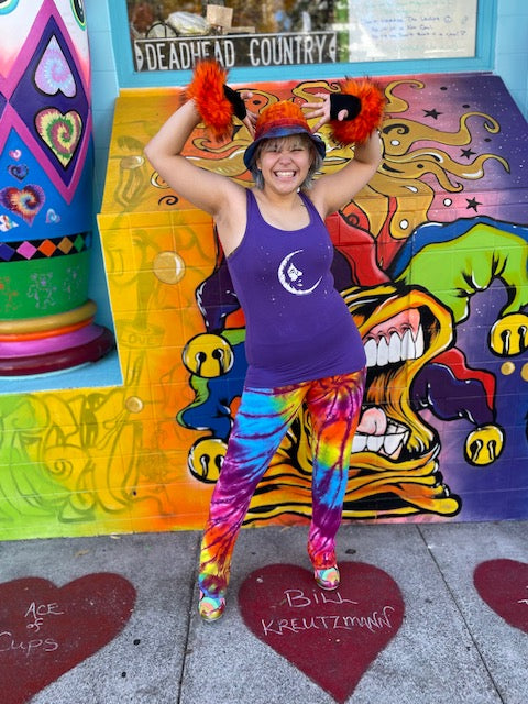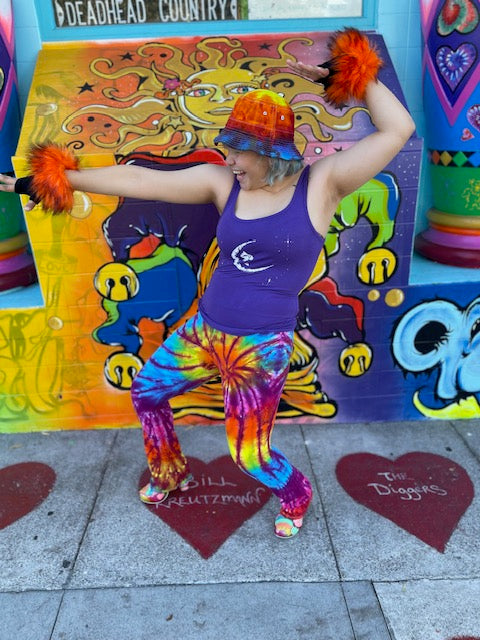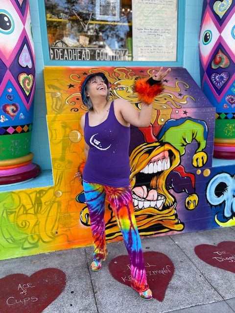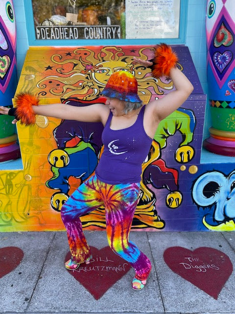These Magical Yoga Pants are American Made Royal Apparel Leggings that we send  up to the EPIC Josh Wojcik of Barefoot Lazer Tie dye in Eugene Oregon!