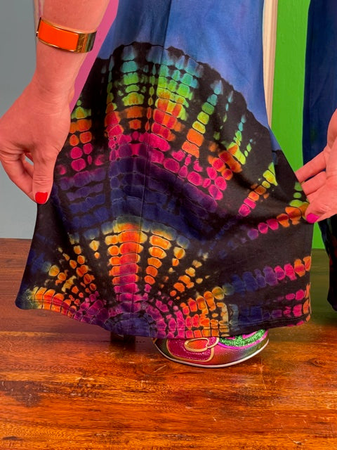 The Black Blank is made in San Francisco by Warrior Within Designs and then we mail them to Bobby and Jolene in Idaho aka Hometown Tiedye, who have been Tie Dying since 2003.  And just always put out the most epic tiedye EVER!