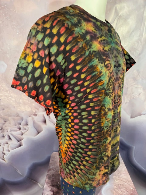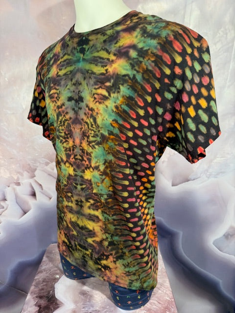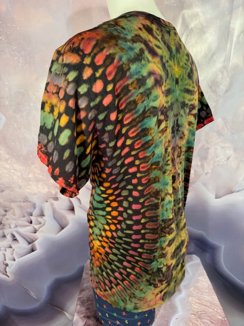 Straight from the Philippines, Japheth's tiedye is one of the hottest in the shop.  He starts with a Black Shirt, then he bleaches it, then he dyes it...OFF THE CHAIN