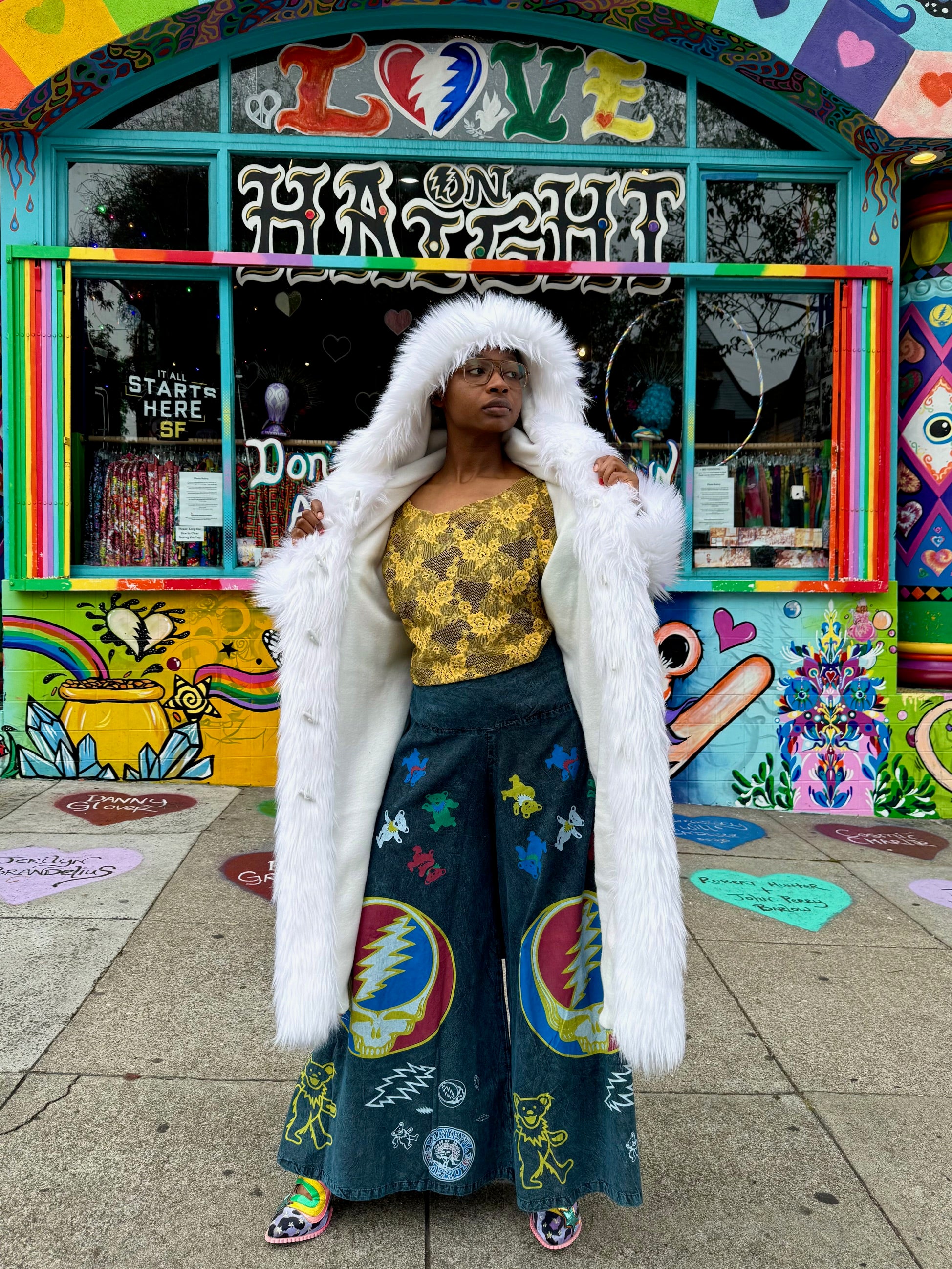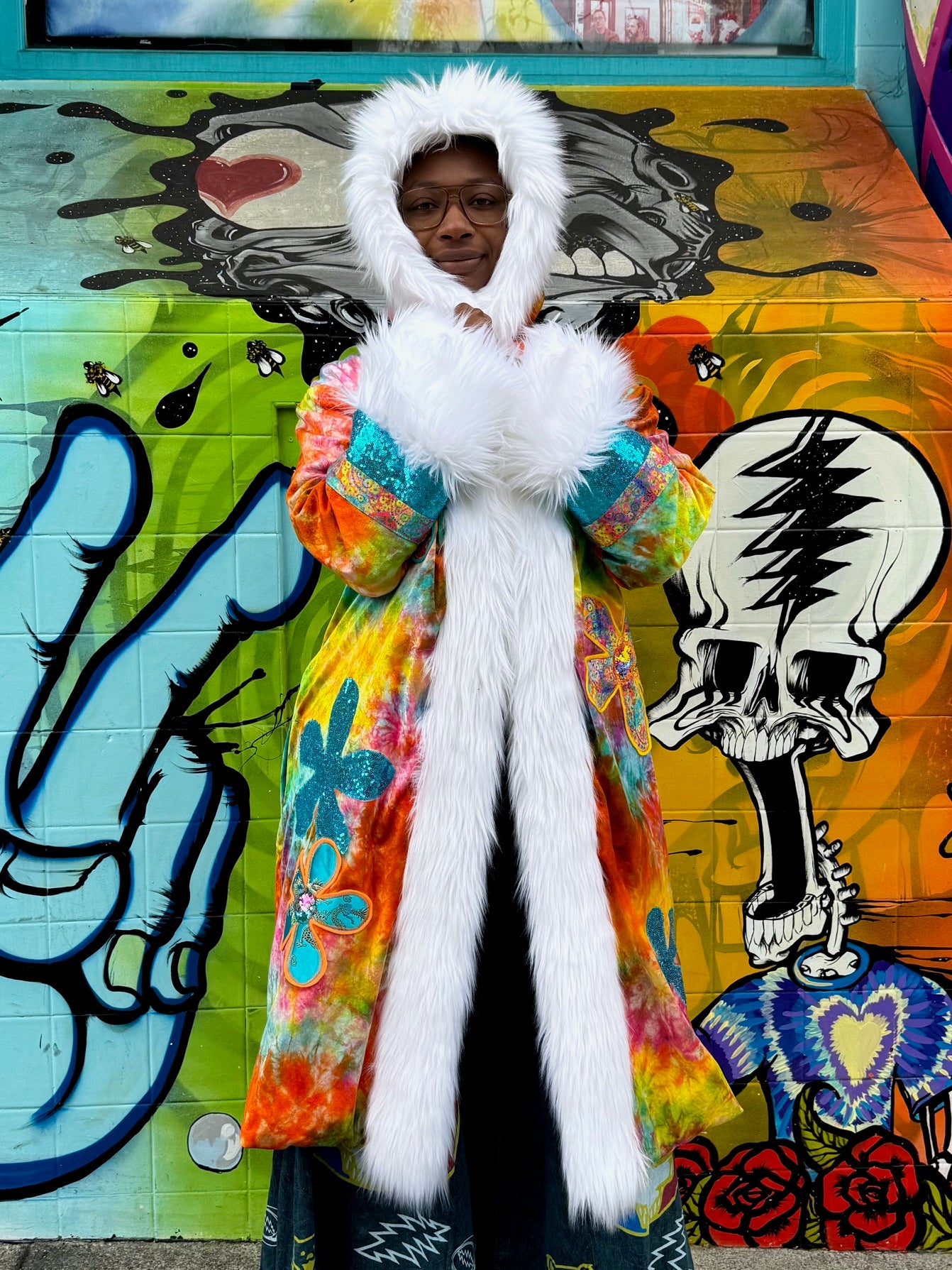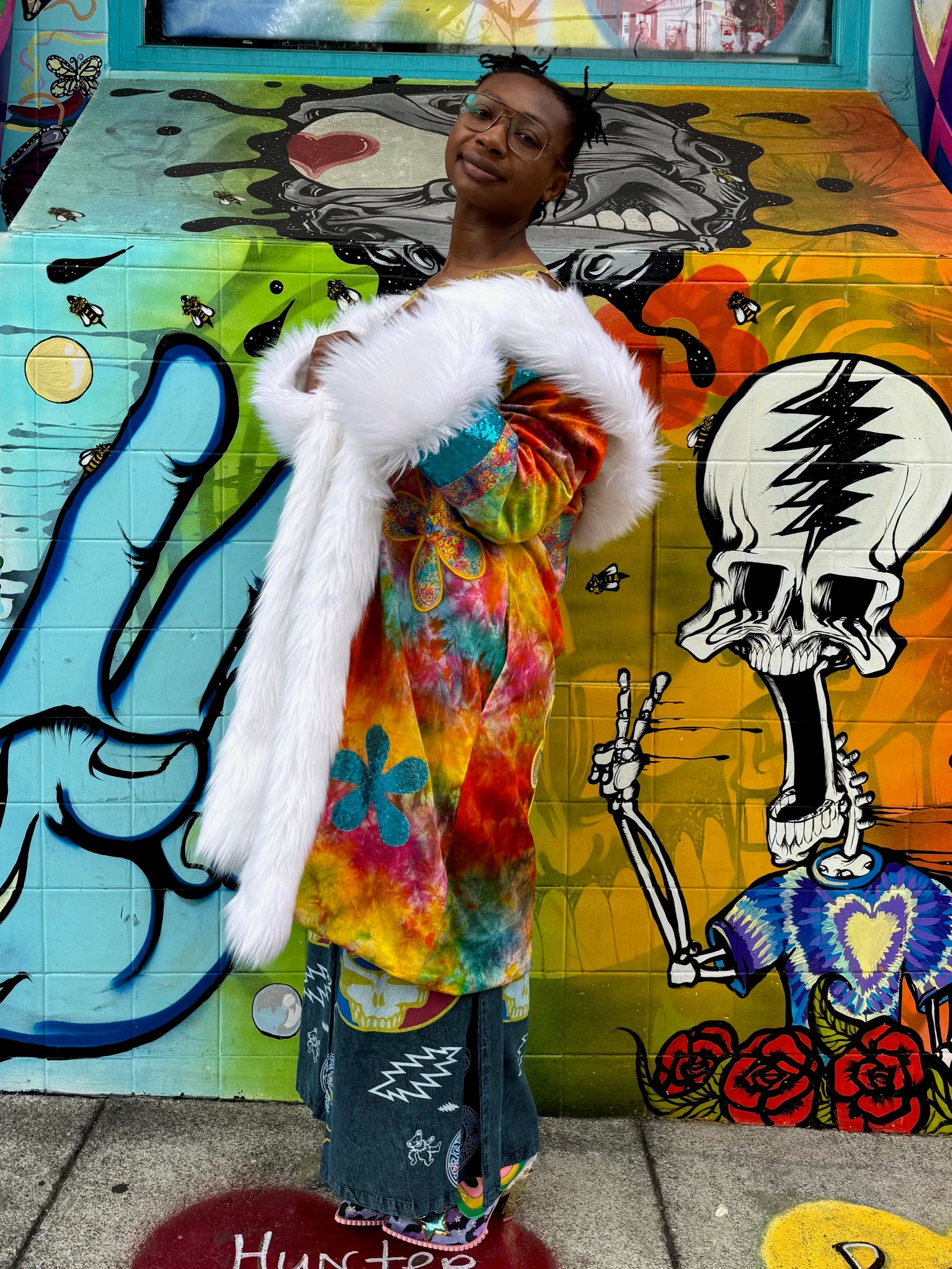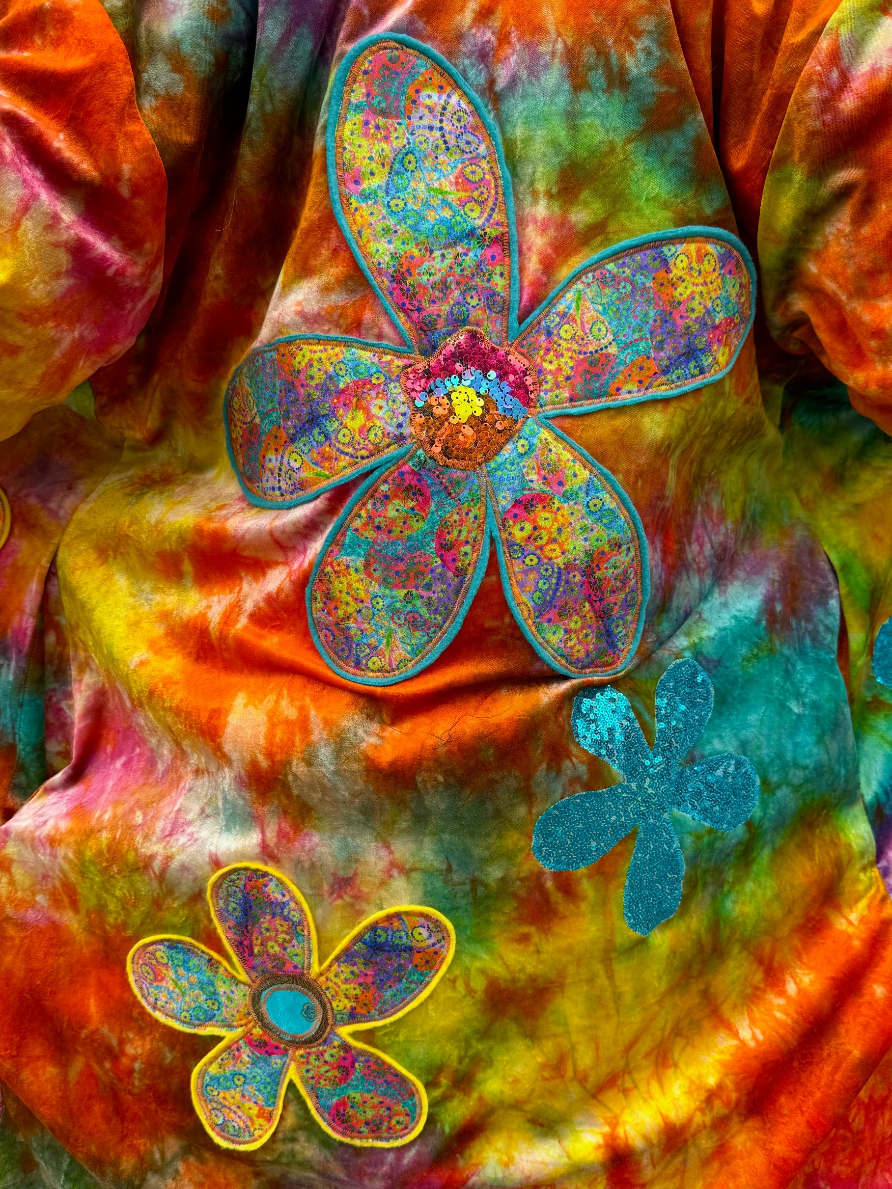 Hand sewn by designer Alice Ritter of New Mexico using unique fabrics, and her own tiedye, you won't find this statement-making piece anywhere else!