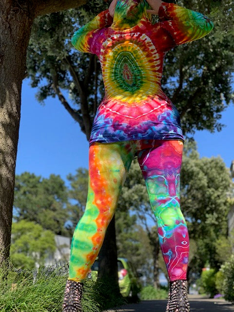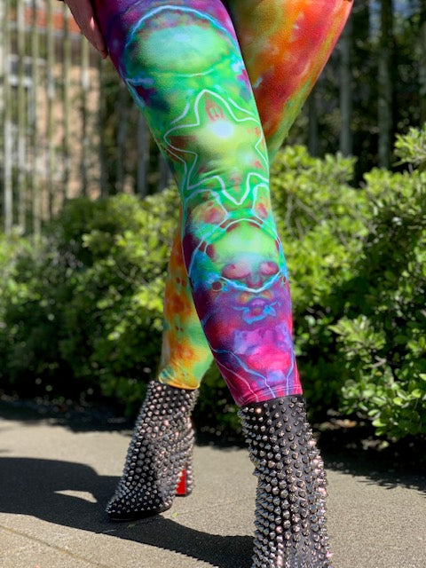Introducing....one of kind tie dyed leggings from the Artist: Corn Dog. Man these dyes are tasty!! Corn Dog is one of our fav ice tie dyed artist. Each dye is like a water color!