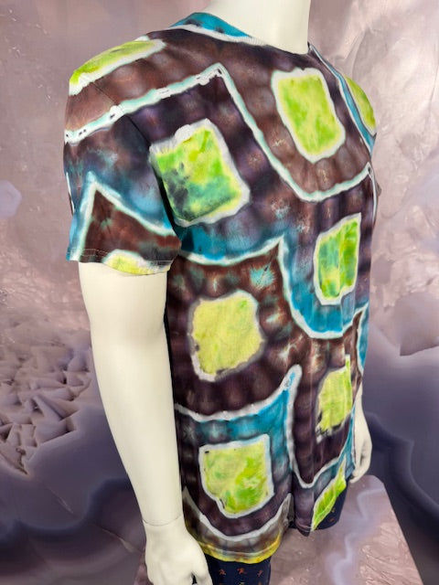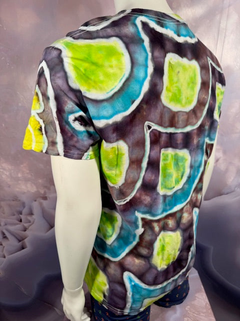 We hope you enjoy meeting Happy Hemp Head aka Shandy & Shades from Camdenton, Missouri. Mostly done with ice dying, they also do some hand painted and stitching work which you can see in their pieces.