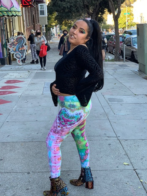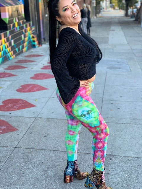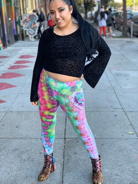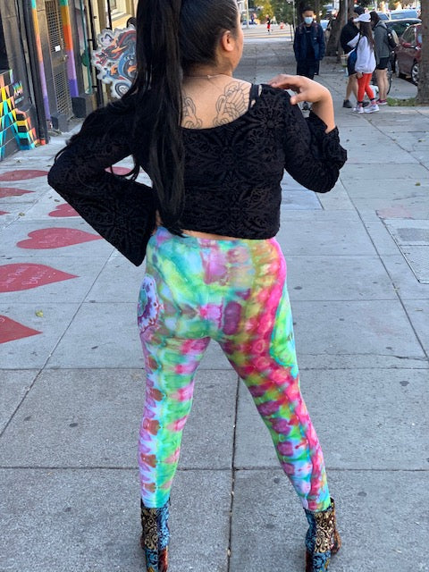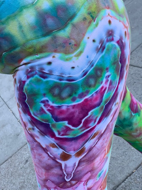 Introducing....one of kind tie dyed leggings from the Artist: Corn Dog.  Man these dyes are tasty!!  Corn Dog is one of our fav ice tie dyed artist.  Each dye is like a water color!