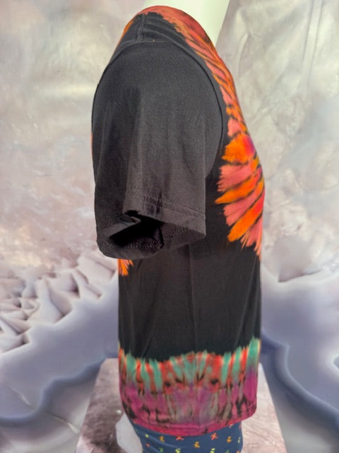 He starts with a black shirt, then bleaches it, then colors it, then ships it to us.  This shirt has traveled far and wide to find you...but here it comes!