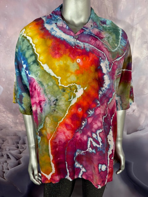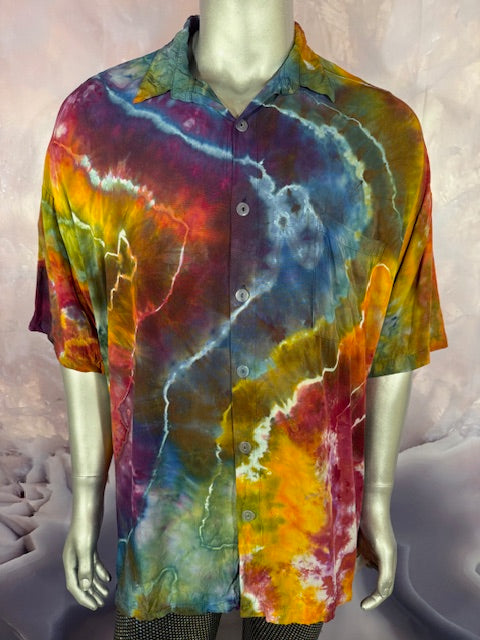 Stay airy and free flowing in this tiedye button down by Tyrannosaurus Dyes aka Brittany from Lafayette, Colorado...it can also button up!