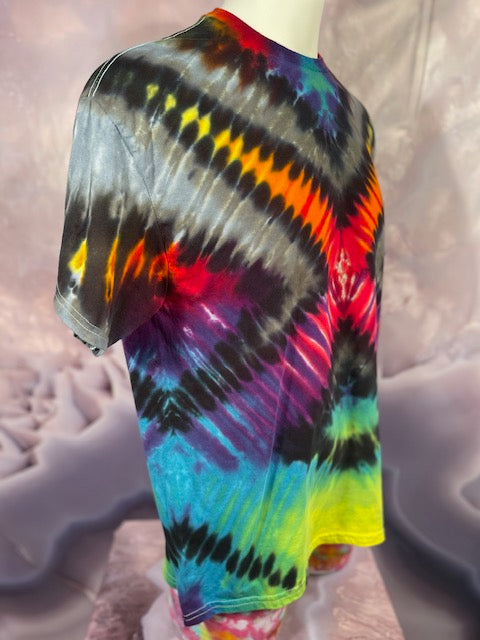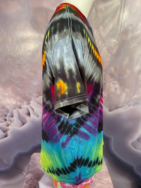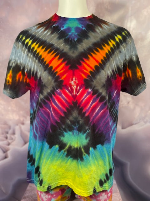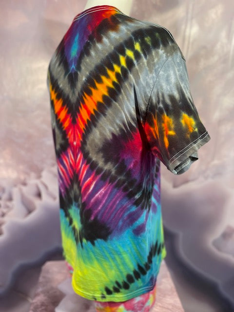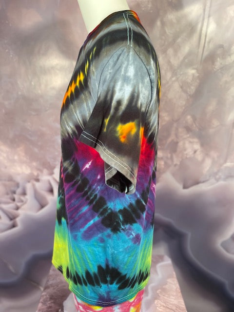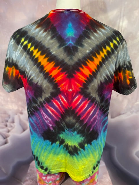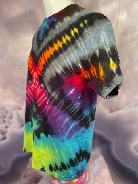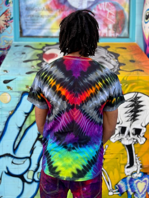 Rich rainbow colors saturate the cotton fabric, ensuring a head-turning, eye-catching look that will brighten every day. No fading here – this shirt has the hue-ue!
