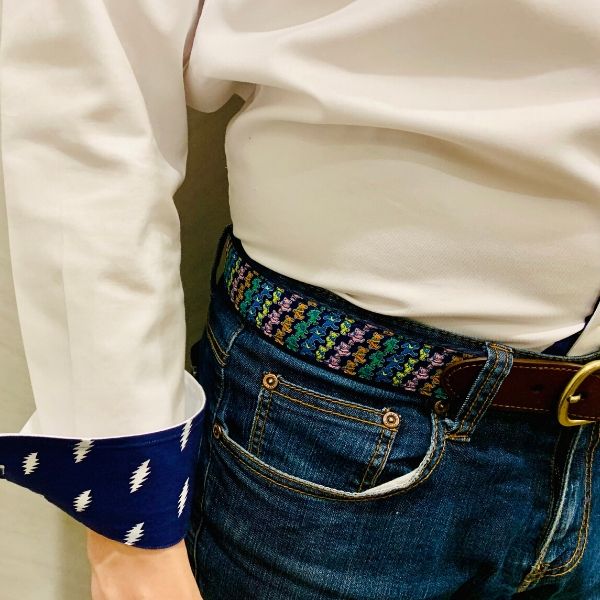 Well, if you need a belt or just want something spicy to add to your wardrobe, you've come to the right place! This high-quality, Grateful Dead Navy Dancing Bears Belt knows how to stand out in a crowd and yet compliment your attire. With a rich navy base and thoughtfully spaced, colorful dancing bears, the Grateful Dead Navy Dancing Bears Belt is an easy choice with any outfit.