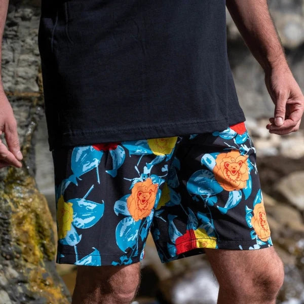 You've just stumbled upon the Grateful Dead Begonia Dancing Bear Board Shorts. These can play in the sand all day. Their 4-way stretch fabric has been known to cause extreme comfort and the sophisticated print has been known to melt faces at beaches from coast to coast. You are sure to get compliments wherever you go!