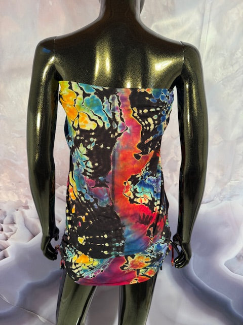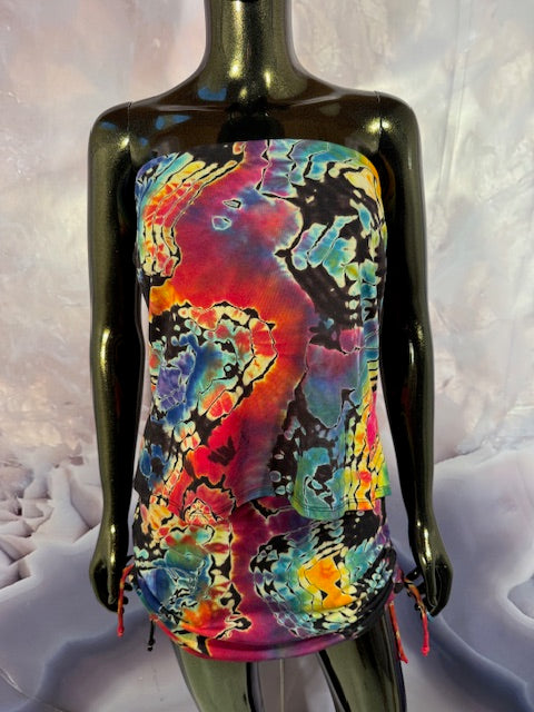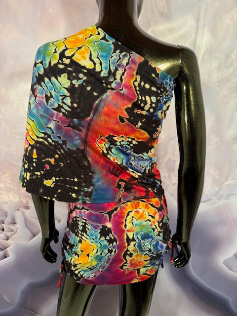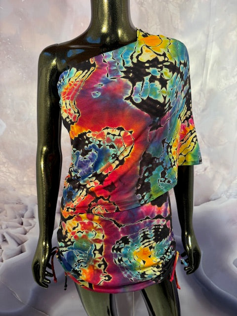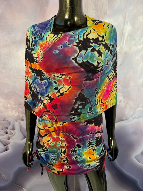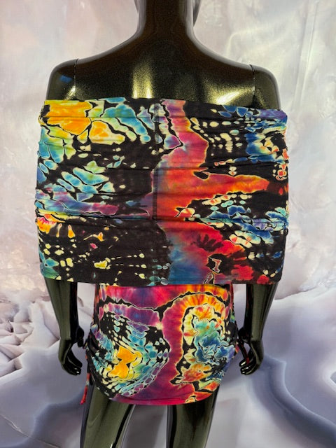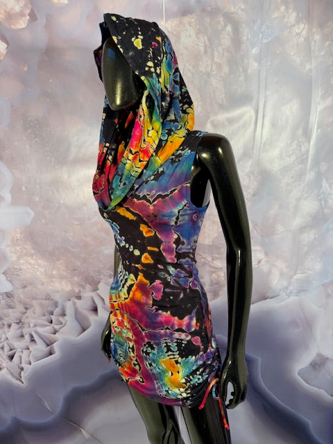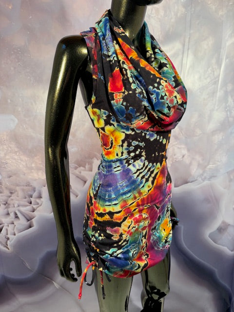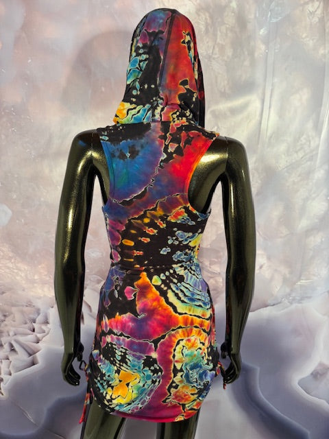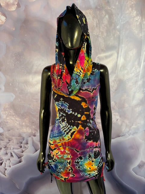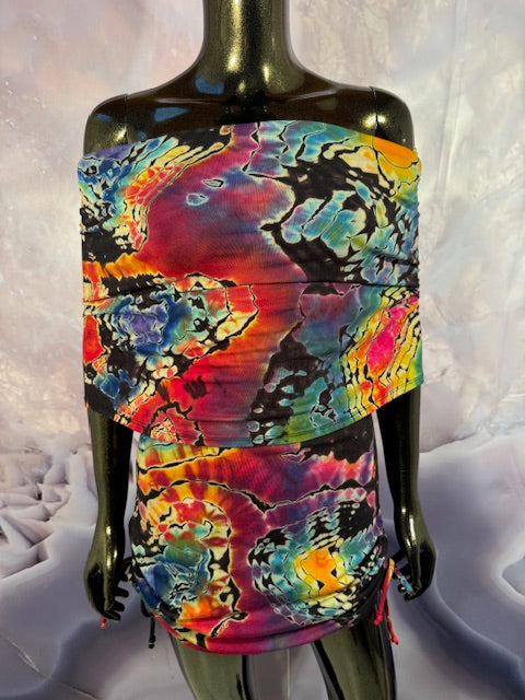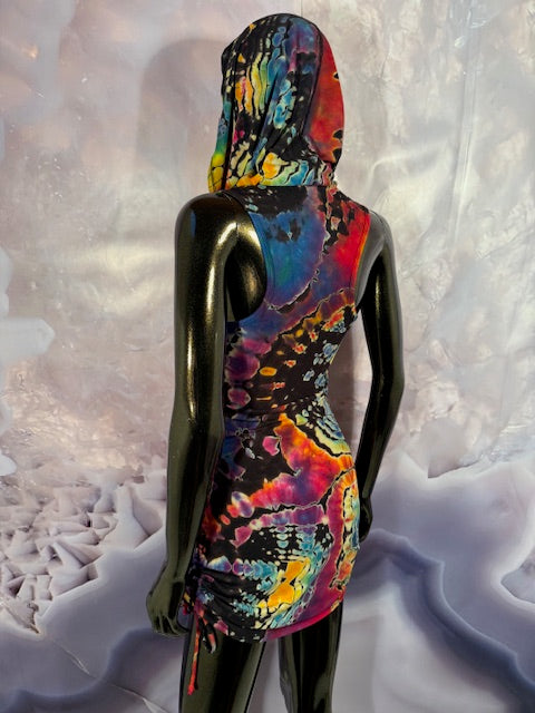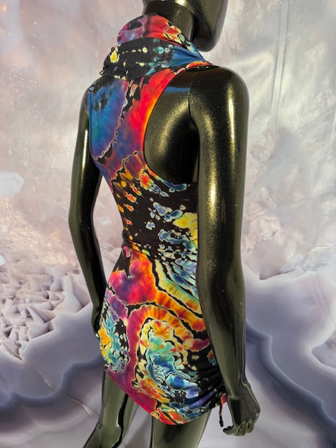 Okay this is a badass dress!! First off, it is made by Warrior Within Designs here in San Francisco, then we mail the Blank Dress up to Idaho to some of our FAV tiedyers Hometown Tiedye and they put their tiedye magic on these epic dresses.