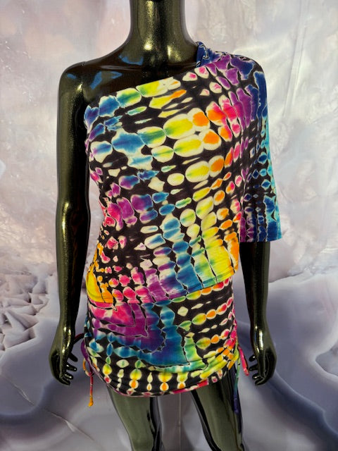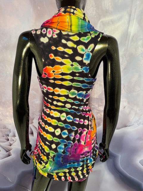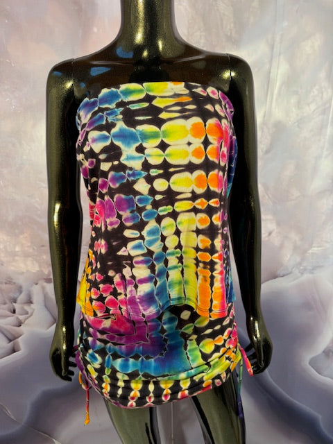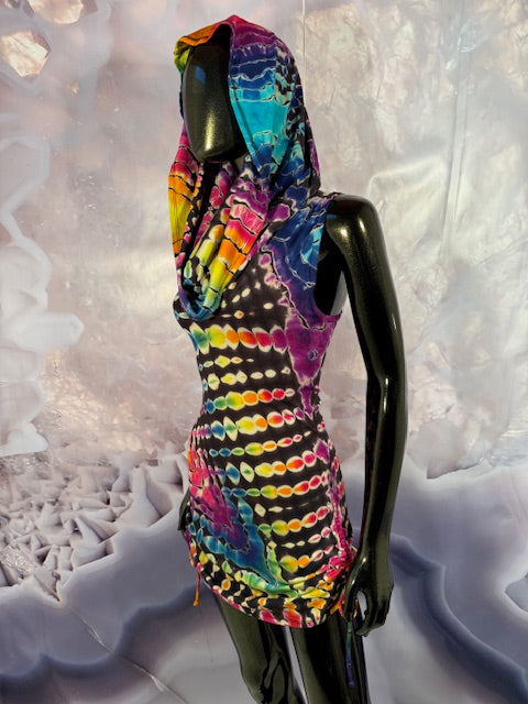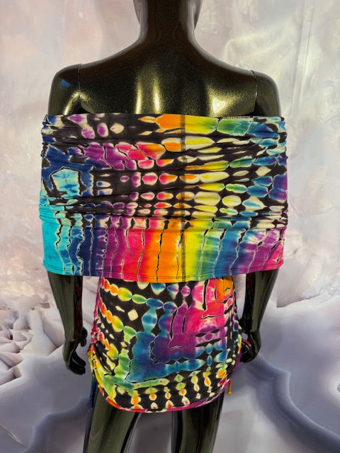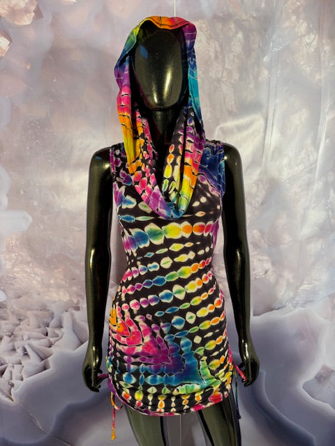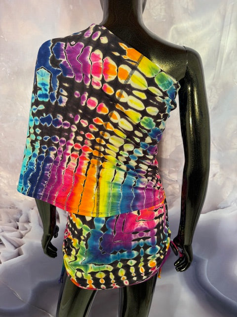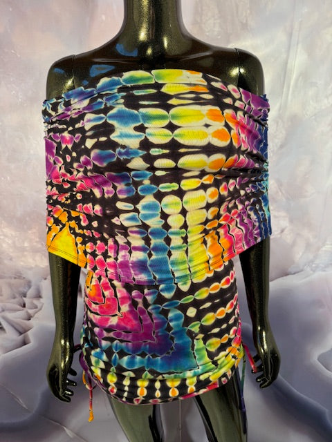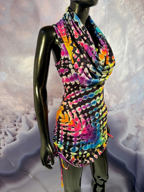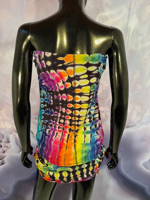 Okay this is a badass dress!! First off, it is made by Warrior Within Designs here in San Francisco, then we mail the Blank Dress up to Idaho to some of our FAV tiedyers Hometown Tiedye and they put their tiedye magic on these epic dresses.