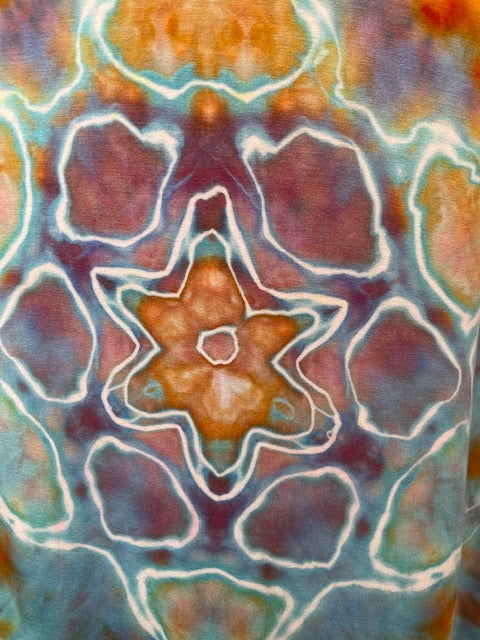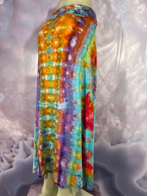 Soft and flowing, feel the wind in the magical cotton - rayon/ cotton blend skirt. Cut and Sewn in California and tiedyed by one of fav tiedye artists...CORNDOG aka Chuck Brine.  We love CornDog's whismical dyes.