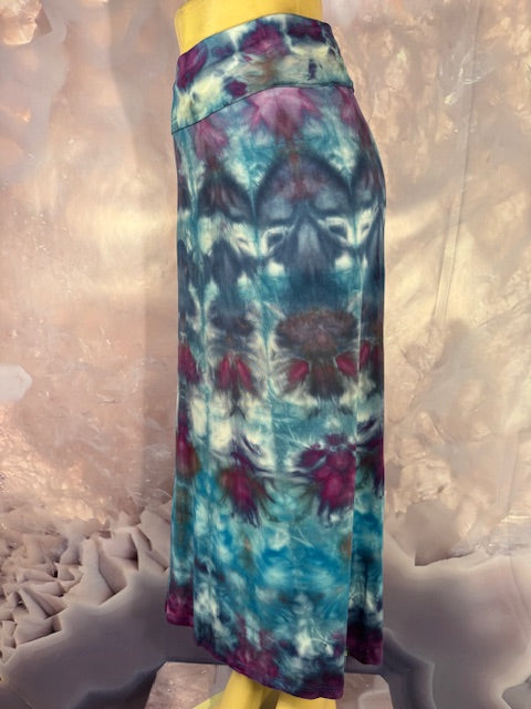 Soft and flowing, feel the wind in the magical cotton - rayon/ cotton blend skirt. Cut and Sewn in California and tiedyed by Misty Morning of San Rafael.